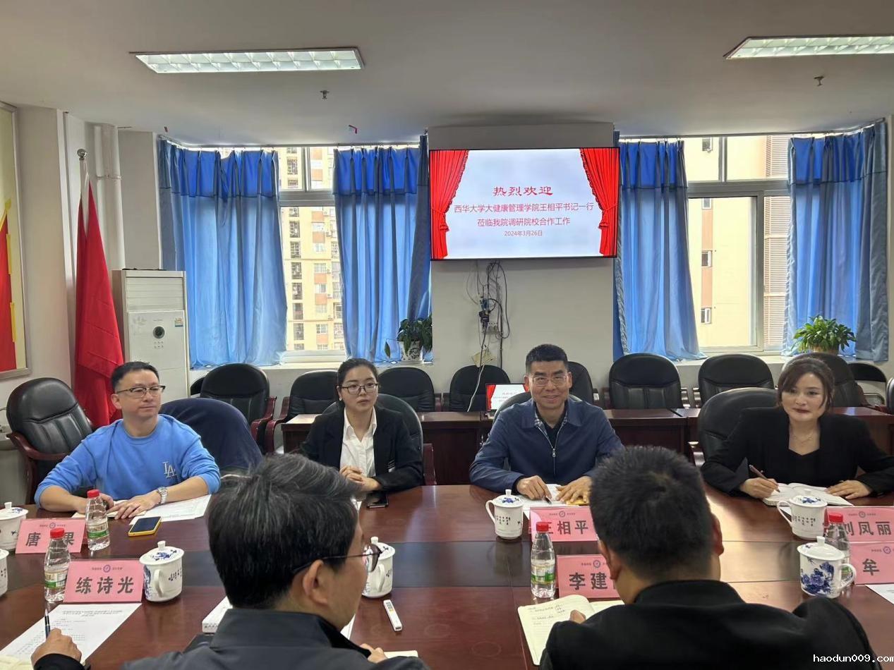 3月26日,大健康管理学院党总支书记王相平、党总支副书记刘凤丽、健康管理系党支部书记王玲玲一行3人前往达州市达川区人民医院开展校院合作洽谈会,医院院长李建国、纪委书记牟婷、副院长杨清、科教科科长周钢、纪检监察室主任兼检验科副主任张诚、信息科科练诗光、健康管理中心王娟、精神科副主任寇平等科室负责人参会。